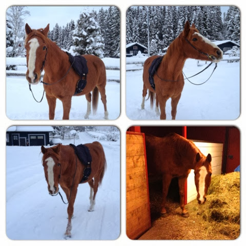 Ojiji tycker att det är godkänt att börja "jobba" lite nu, han kräver inte att få gå som en dammsugare hela tiden längre! Hi hi. Idag började vi hitta tillbaka till lite skolskritt igen och nu ska vi vara noggranna och tänka på det Birgitta sagt. Har hennes röst i mitt huvud varje pass på ridbanan, perfekt! Han var riktigt fin min fuxkille idag, fin jämn energi på slutet!